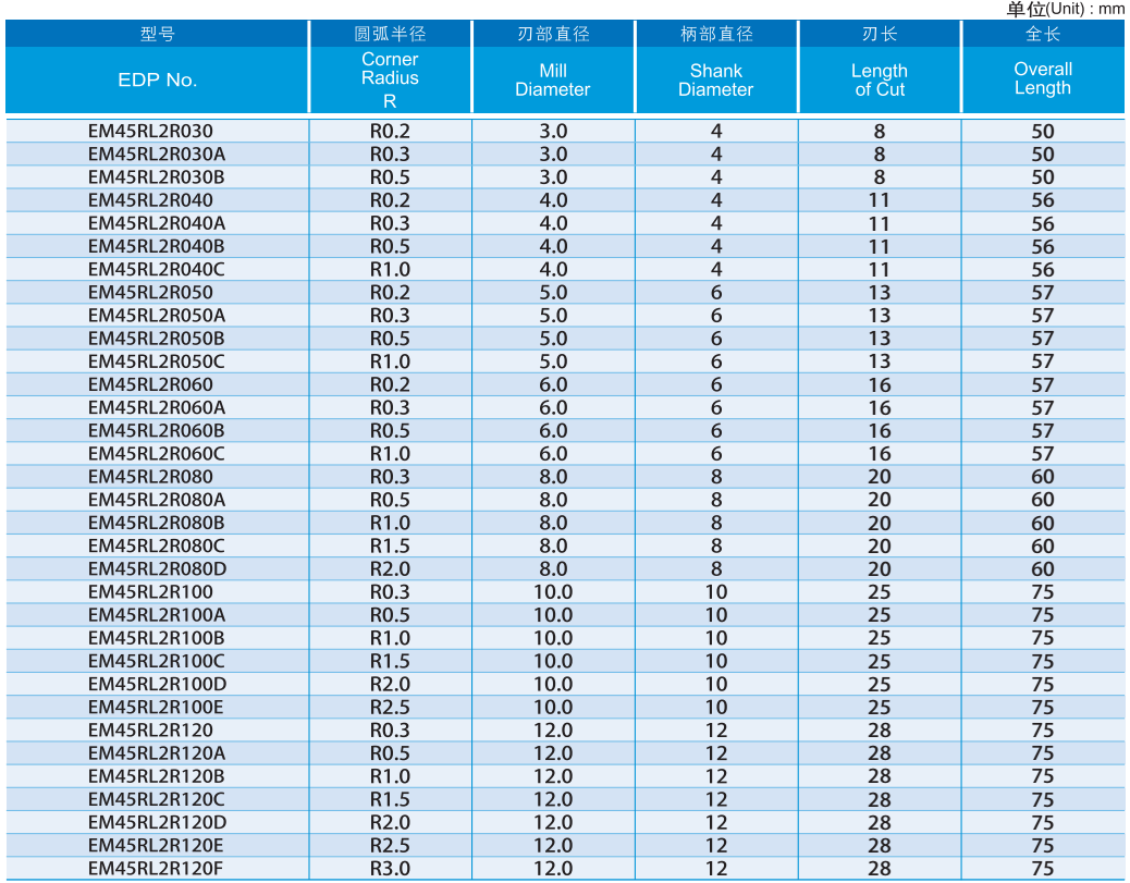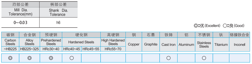 · 設(shè)計(jì)用于加工碳鋼,工具鋼,鈦合金,不銹鋼等多種用途的鋼 · 耐磨性 · 4刃可得到較好的表面粗糙度 · 適應(yīng)于高速加工,濕式和干式切削條件