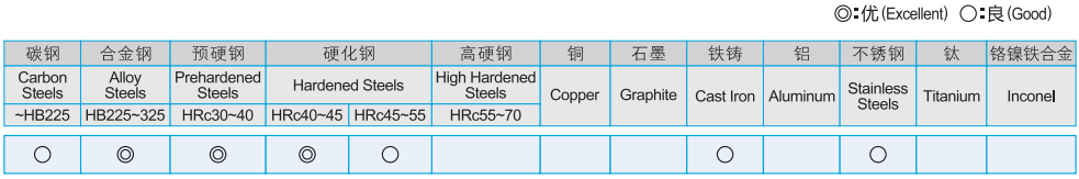· 為加工工具鋼,合金鋼,模具其他硬質(zhì)材料設(shè)計 · 提高表面光潔度 · 提高進給速度