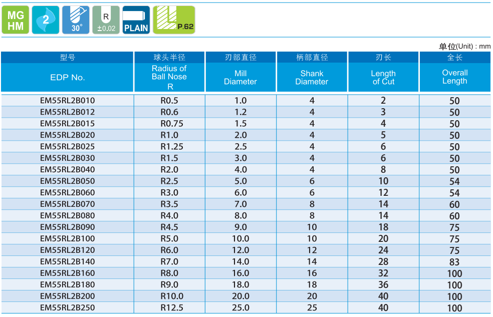 · 全長(zhǎng)較短的經(jīng)濟(jì)型 · 半徑公差±0℃2mm&刃長(zhǎng)較短