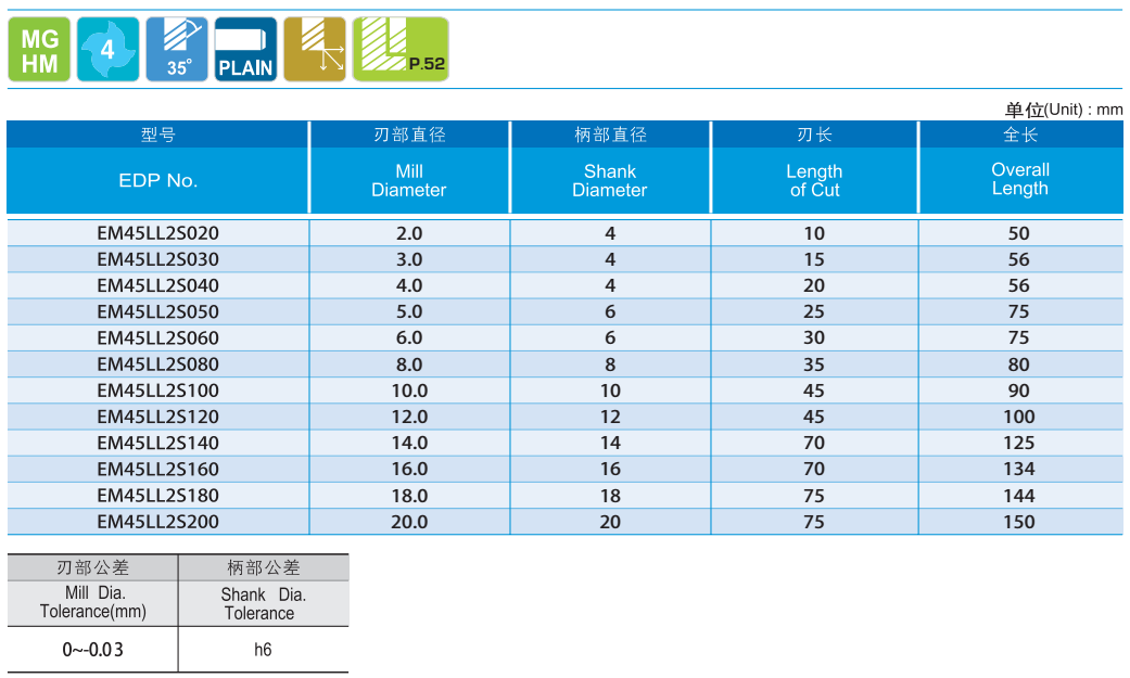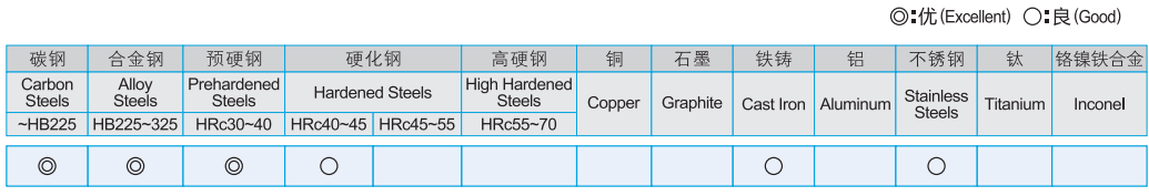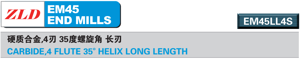 · 設計用于加工碳鋼,工具鋼,鈦合金,不銹鋼等多種用途的鋼 · 高耐磨性 · 4刃可得到較好的表面粗糙度 · 適應于高速加工,濕式和干