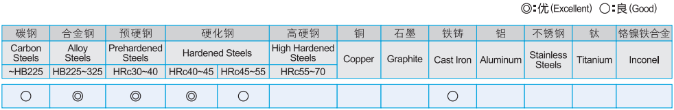 · 設(shè)計用于加工硬度高材料 · 高速切削且能以高進給率精銑 · 表面光潔度 · 高耐磨性 · 適于干式銑削