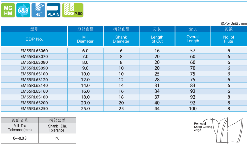 · 設計用于加工高硬度材料 · 高速切削且能以高進給率精銑 · 提高表面光潔度 · 適于干式銑削